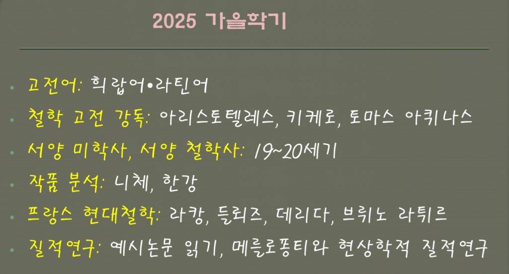 2025년 가을 학기 개강일 9월 29일!