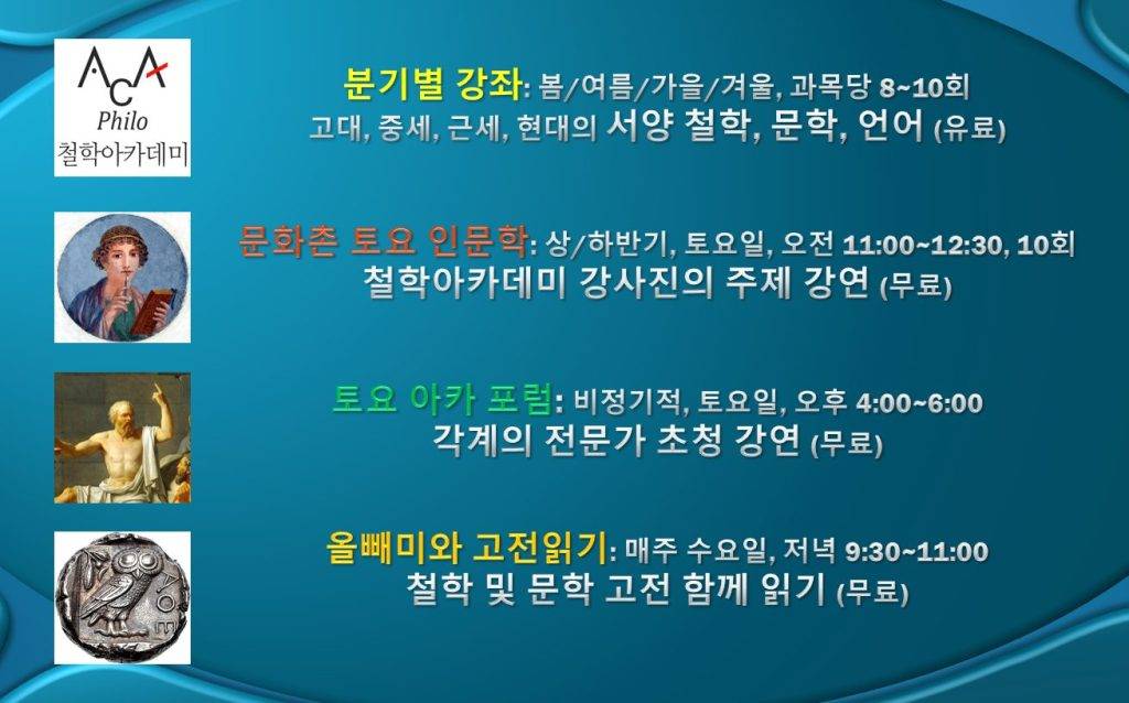 수강 신청은 메일(acaphilo1@naver.com)이나 전화(02-2279-2871)로 해주세요.