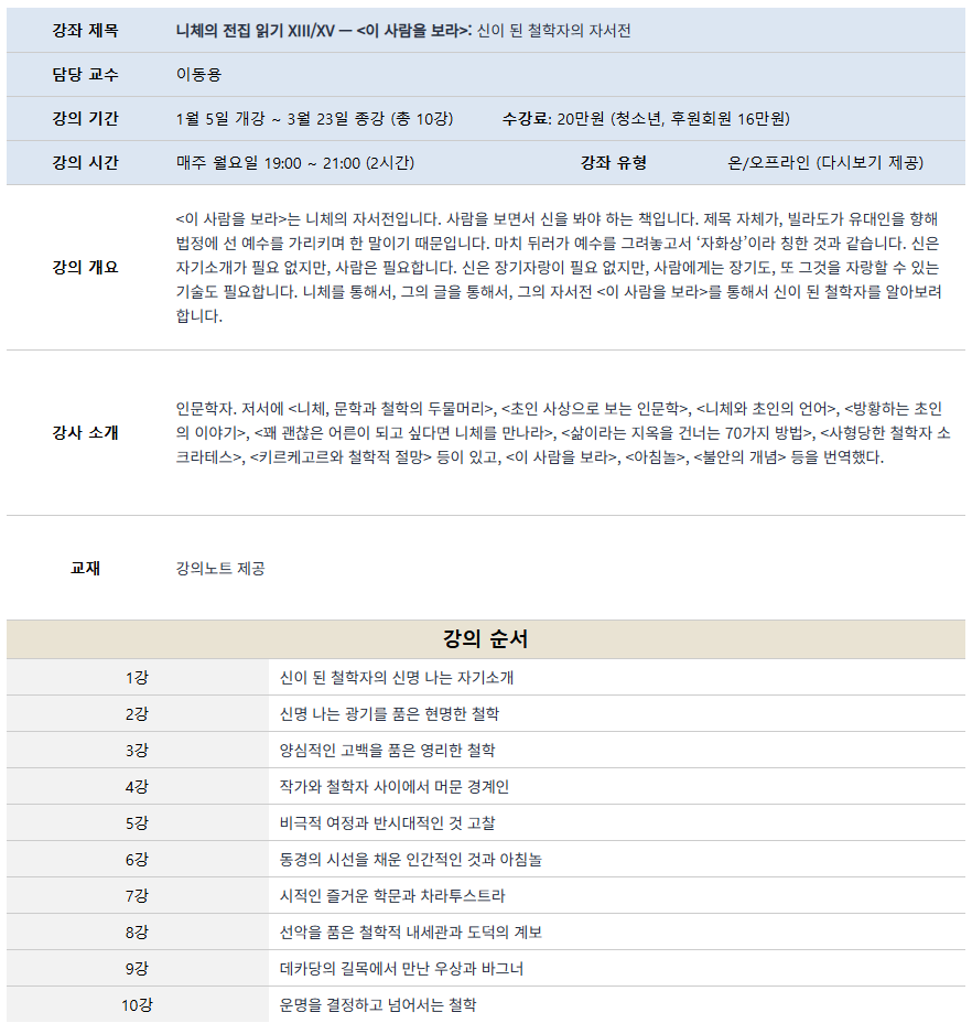 26겨울_이동용(월)_니체의 전집 읽기 XIII/XV — <이 사람을 보라>, 신이 된 철학자의 자서전 (1월 5일 개강)