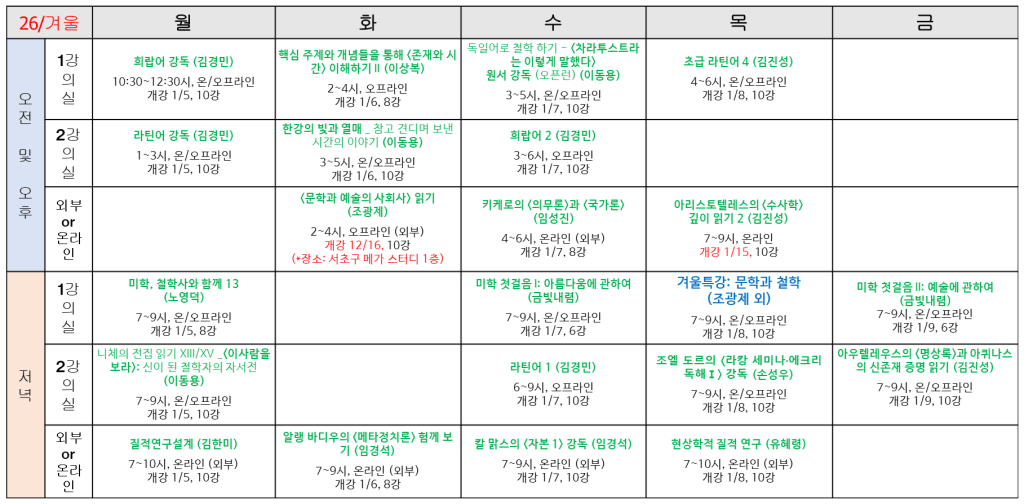 2026 겨울학기 강의 시간표