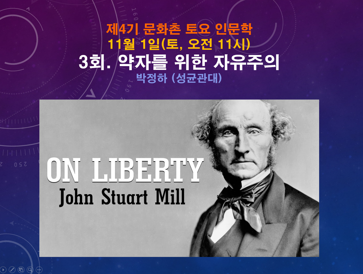 제4기 문화촌 토요 인문학 3회박정하 선생님의 "약자를 위한 자유주의: 2시간에 끝나는 밀 자유주의론"