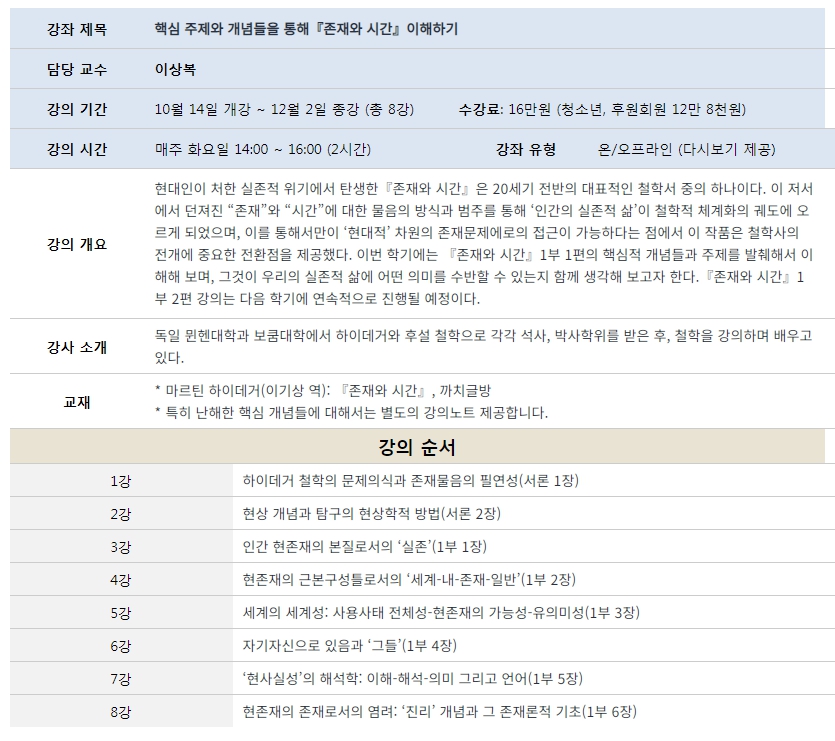 <![CDATA[25가을_이상복(화)_핵심 주제와 개념들을 통해 『존재와 시간』 이해하기 (10월 14일 개강)]]>